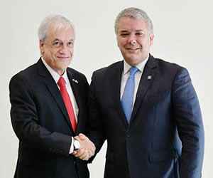 Durante la reunión bilateral que sostuvieron los presidentes de Colombia, Iván Duque, y de Chile, Sebastián Piñera, acordaron dar un nuevo impulso a la Alianza del Pacífico y al Foro para el Progreso de América del Sur (Prosur), al tiempo que ratificaron el propósito de trabajar unidos para fortalecer las relaciones de comercio, inversión, relaciones institucionales y protección del medioambiente, entre otros.