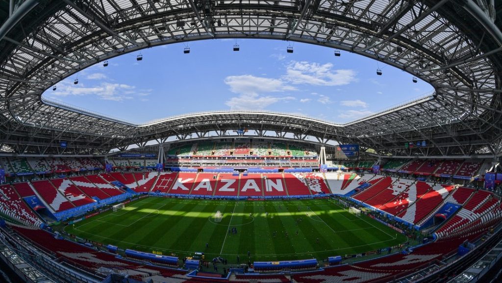 El estadio donde se jugará el encuentro, el Kazán Arena, se construyó en Kazán, capital de la república rusa de Tatarstán, con motivo de la XXVII Universiada de Verano de 2013, siendo desde entonces la cancha del Rubín Kazán, de la Primera División rusa. En 2017 fue una de las sedes de la Copa Confederaciones y también albergó el Campeonato Mundial de Natación de 2015, para lo que en su interior se construyeron dos piscinas. En este estadio se jugaron seis encuentros del Mundial 2018 de Rusia.