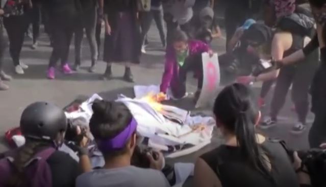 Más de 60 personas resultaron heridas, 13 hospitalizadas, y siete personas fueron arrestadas por atacar a un grupo de manifestantes. El problema de la violencia contra las mujeres en México está empeorando y el gobierno está siendo acusado de inacción. Este lunes las mexicanas han convocado un paro nacional.