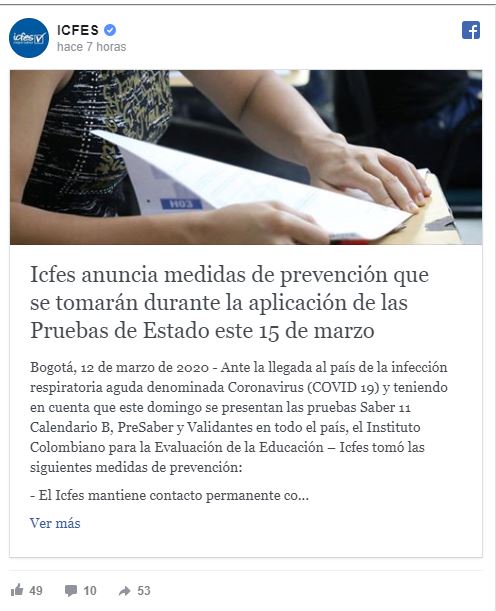 Según un comunicado publicado por el Instituto Colombiano para la Evaluación de la Educación (Icfes), la prueba que sería presentada por más de 102.000 personas se llevará a cabo el día que se tenía planeado: el domingo 15 de marzo.