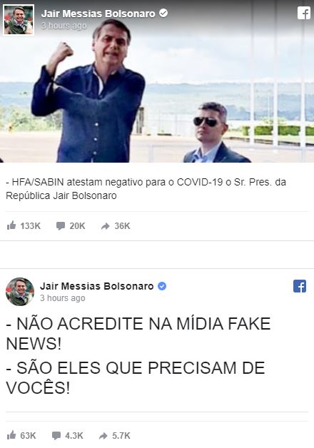 A continuación, las publicaciones que Bolsonaro hizo en Facebook: