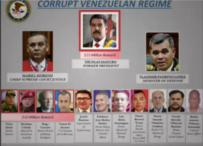 Según la acusación dada a conocer en rueda de prensa por el fiscal general, William Barr, Maduro «ha permitido usar Venezuela como un lugar seguro para el narcotráfico» en la región. «Ha inundado Estados Unidos de cocaína», ha dicho.