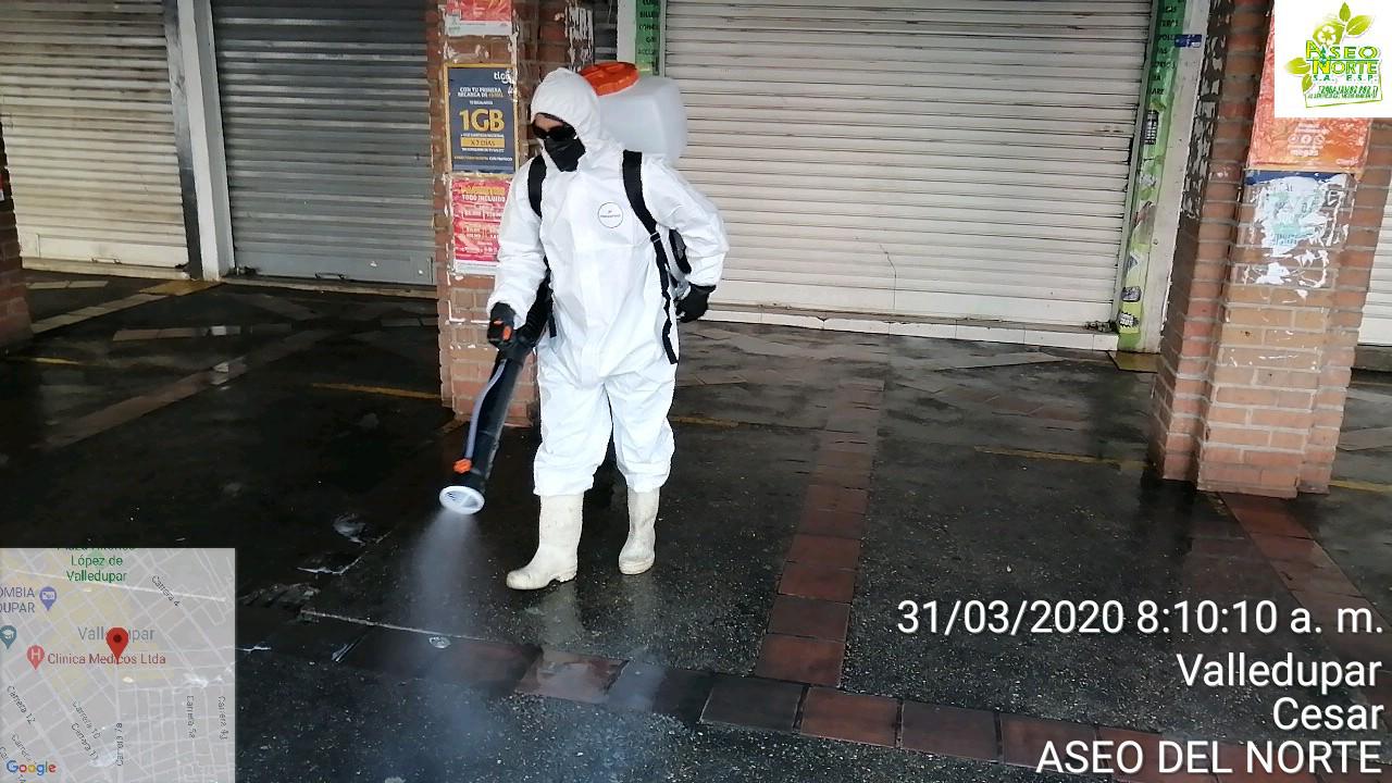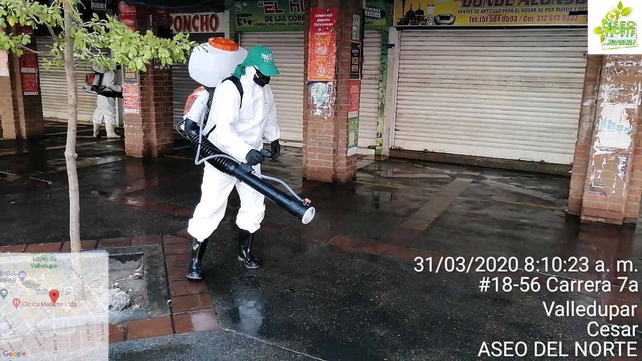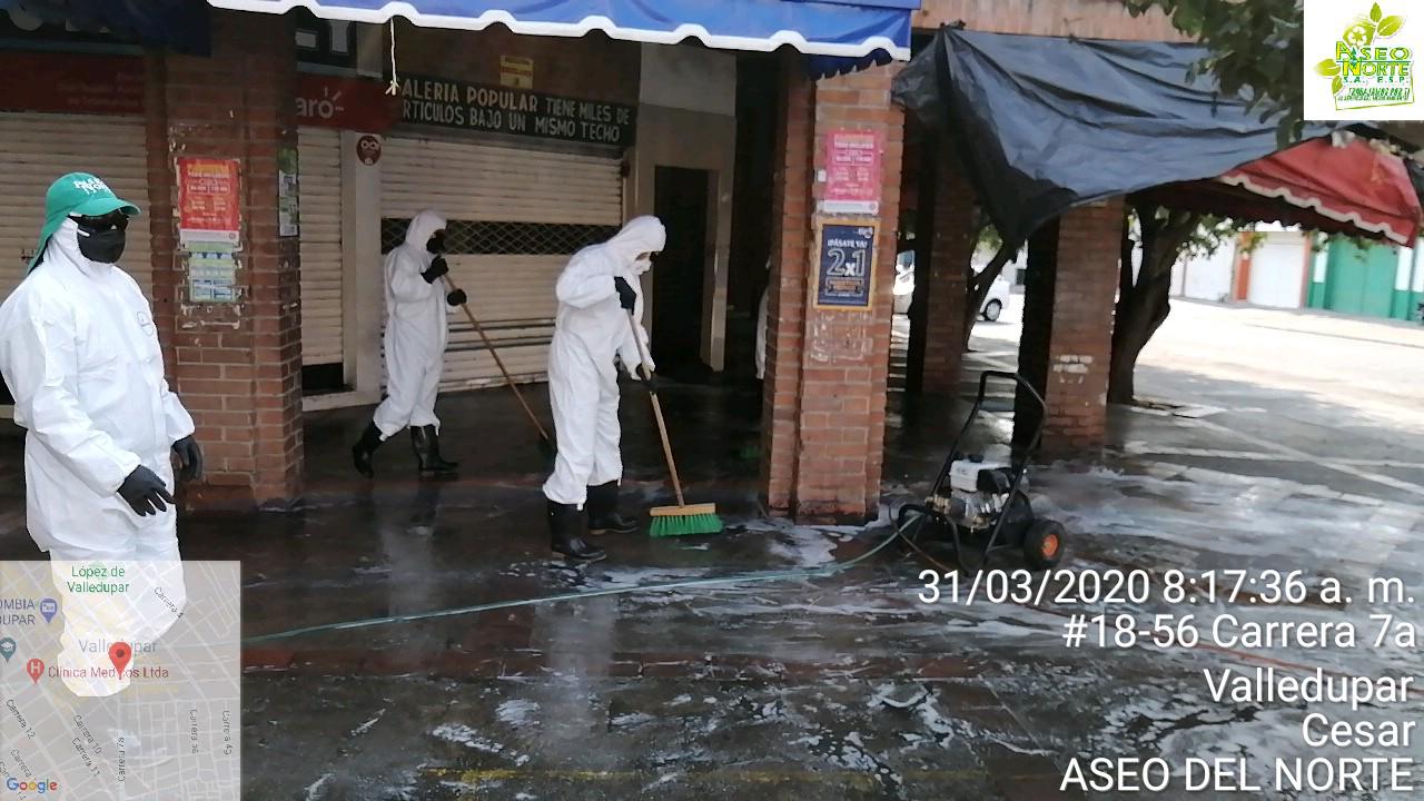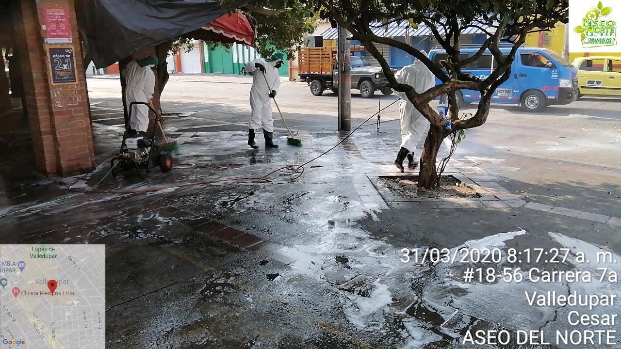 Los funcionarios de Aseo del Norte, procedieron al barrido húmedo en las vías públicas, para la eliminación de residuos y materia orgánica, con el fin de impedir la dispersión del vírus. El agua que utilizan los barredores contiene hipoclorito sódico, para la correcta desinfección.