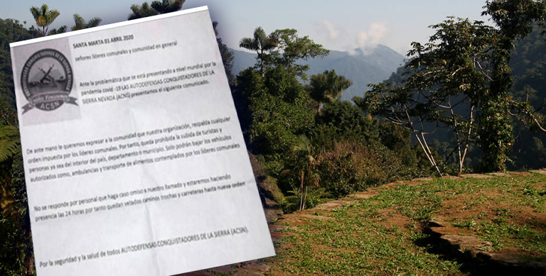 En los últimos minutos se conoció un comunicado emitido por las denunciadas Autodefensas Conquistadores de la Sierra Nevada (ACSN), el cual prohíben el ingreso de turistas y personas a la Sierra Nevada de Santa Marta.