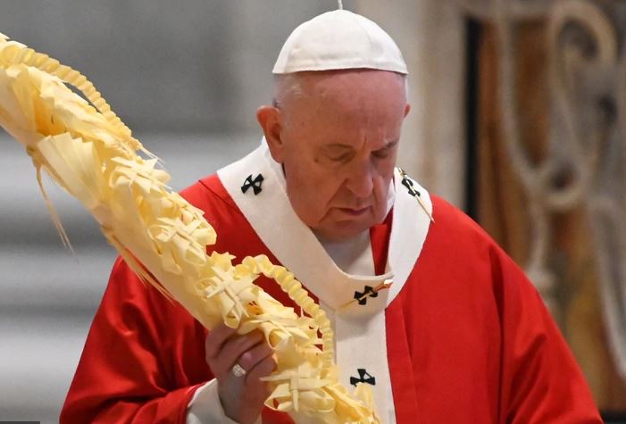 Generalmente, decenas de miles de católicos, turistas y peregrinos, sujetando ramas de olivo u hojas de palma habrían acudido en masa a una misa al aire libre dirigida por el pontífice. En lugar de eso, Francisco celebró la misa dentro de la Basílica de San Pedro, que parecía aún más enorme de lo normal debido a que estaba mayormente vacía.