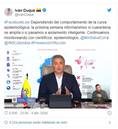Duque resaltó que lo más probable es que el aislamiento se extienda en el caso de colegios y para mayores de 70 años. Al igual que en eventos que impliquen aglomeraciones.