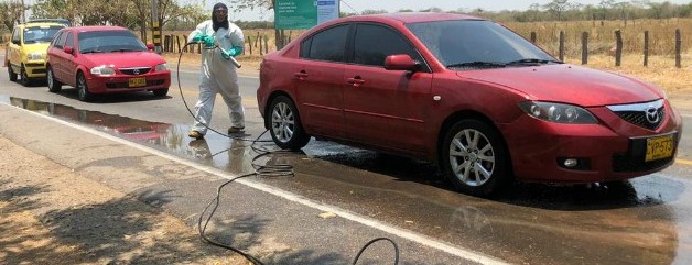 El Equipo de Reacción Inmediata que hace tamizaje y control en las entradas de la capital del Cesar, está desinfectando todos los vehículos que ingresan a la ciudad.