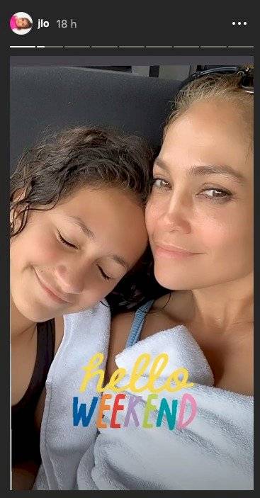 A través de su cuenta de Instagram, la famosa publicó dos selfies a lado de Emme, después de haber pasado la tarde jugando en la alberca de su mansión en Miami. Ambas tenían el cabello mojado y estaban envueltas en toallas blancas. Jennifer Lopes posó sin maquillaje y con lentes de sol en su cabeza.
