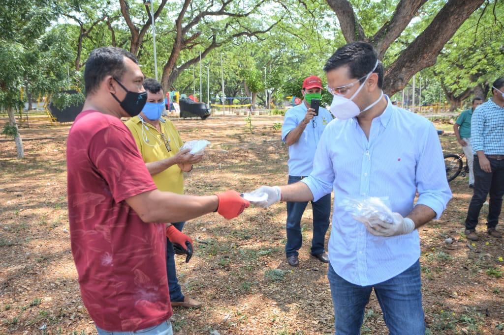 Guardando todos los protocolos de bioseguridad y acompañado de la Secretaria de Salud, Lina De Armas y el Secretario de Transito, Roberto Daza, el mandatario entregó los elementos de protección personal a los conductores, expresando su compromiso con la comunidad.