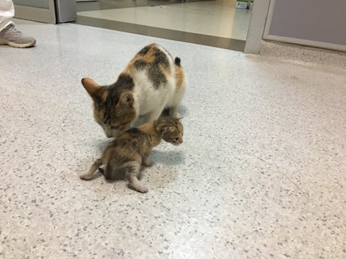 Gatita lleva a su cría enferma al hospital y conmueve a las redes sociales