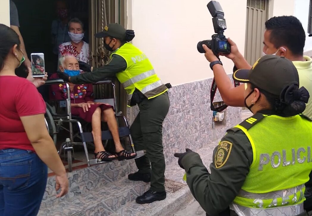 Sin embargo, el grupo de policías de Rionegro llegó con la camioneta adornada para recordarle que “su cumpleaños es muy importante para toda la comunidad”.blu