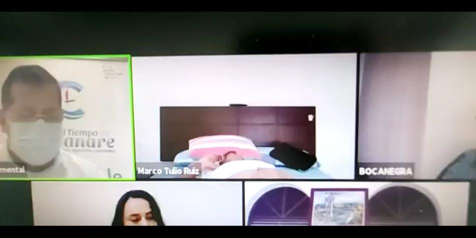En la mañana de este martes la Asamblea de Casanare realizó la sesión virtual de debate al plan de Desarrollo Departamental. Mientras la reunión ocurría, en uno de los videos quedó registrado el momento en el que el diputado del partido Cambio radical, Marco Tulio Ruiz, se acuesta en su cama.