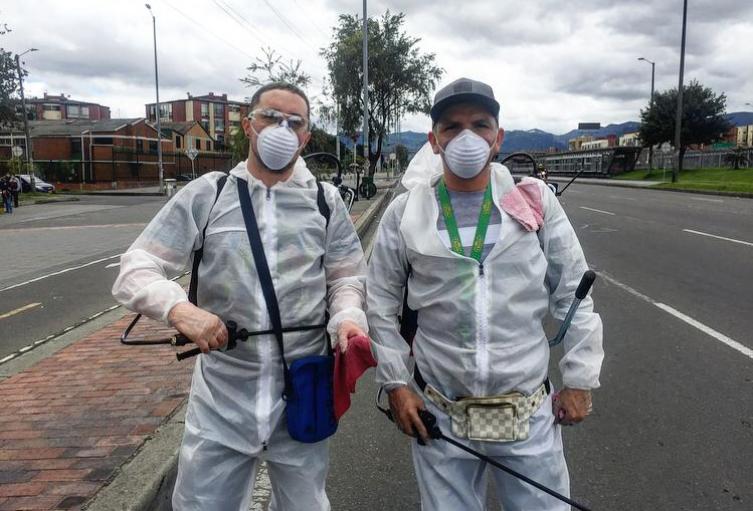 «Como no tenemos empleo nuestro plan es salir a trabajar y ayudar y generar un empleo para nosotros. Por eso estamos desinfectando carros, casas y demás en Bogotá . Usamos un producto que se llama amonio de quinta generación; es un producto que no es tóxico y aguanta hasta 48 horas”, contó Diego Alarcón.