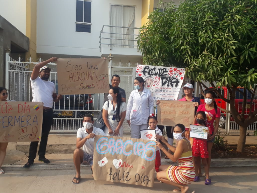 Entre aplausos y pancartas alusivas al Día de la Enfermera, un grupo de vecinos de la urbanización Villas de Catalina en Valledupar, recibieron a dos de sus vecinas profesionales de la salud, que hoy forman parte de la lucha sin cuartel, que se vive por la pandemia del Covid-19.