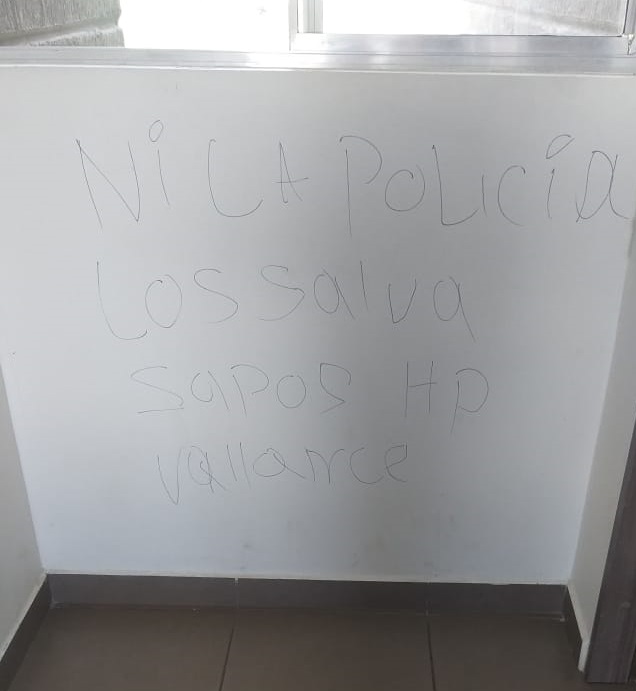 “Doctorcita, si no se va la sacamos a bala. Ni la Policía los salva, sapos HP váyanse”, dice el mensaje pintado en el muro.