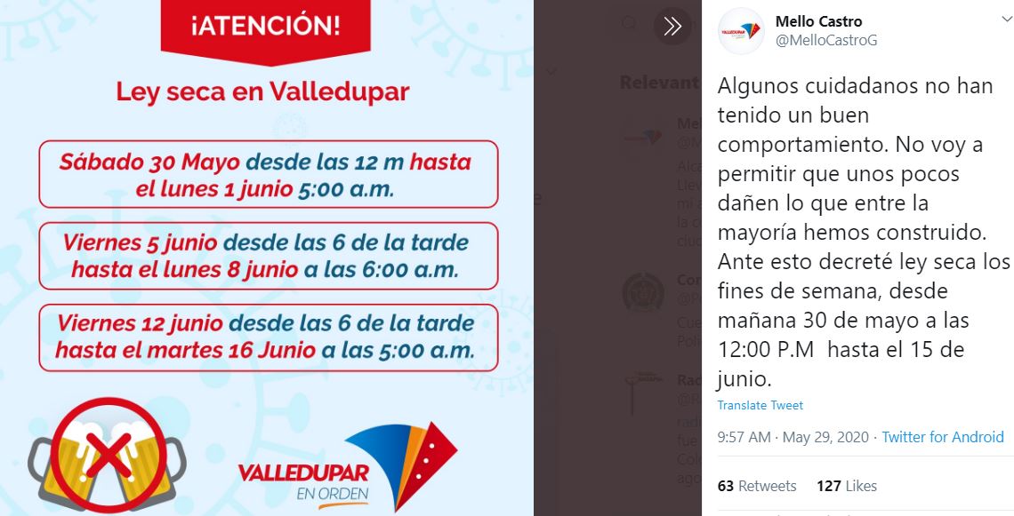 Nuevo pico y cédula en Valledupar durante extensión de la cuarentena del 1 de junio hasta el 1 de julio