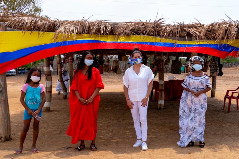 La Primera Dama, María Juliana Ruíz, visitó el sector Paraíso, en Riohacha (La Guajira), donde habita la comunidad wayúu jarijijimana, para exaltar el rol de las mujeres y rechazar cualquier acto de violencia en contra de ellas.