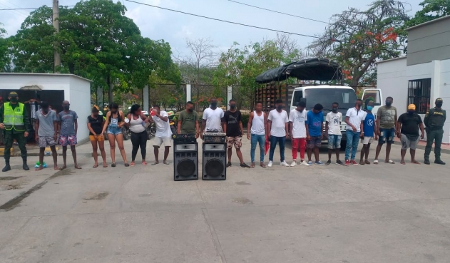 Durante la intervención la Policía incautó: dos parlantes de 15”, dos consolas de música, un DVD y dos parlantes de fabricación artesanal, los cuales fueron puestos a disposición de la Fiscalía junto con los 18 capturados que deberán responder por el delito de violación a las medidas sanitarias.