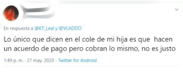 LA FM consultó con tres madres de familia quienes pidieron proteger su identidad y denunciaron que las instituciones en las que estudian sus hijos tampoco les brindaron descuentos u otro tipo de ayudas que les permitiera llegar a acuerdos de pago.