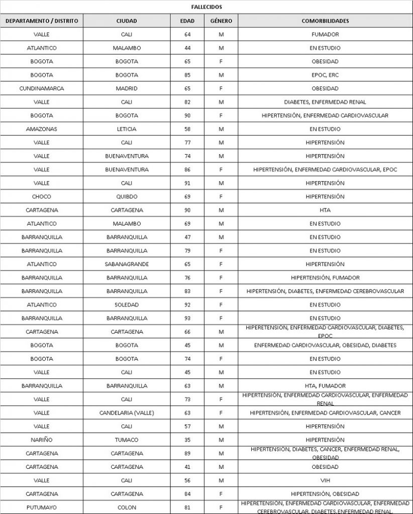 Y esto son lo fallecidos en Colombia:
