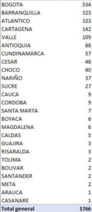 Colombia preocupada con más de 1.700 casos positivos y el mayor número de muertes en un día