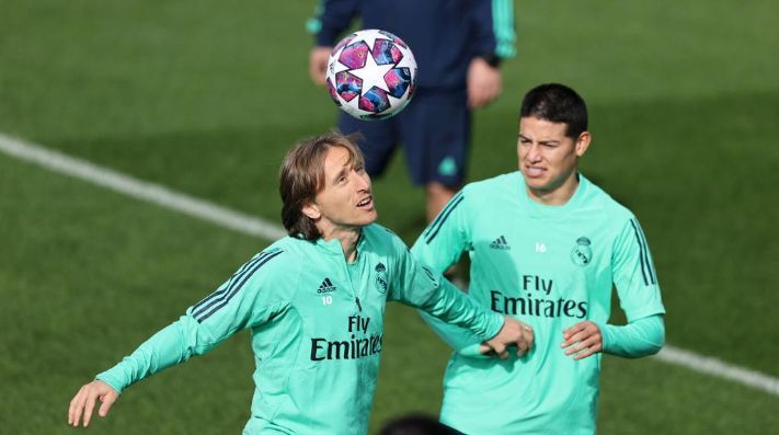 James Rodríguez y Luka Modric en lso entrenamientos del Real Madrid.