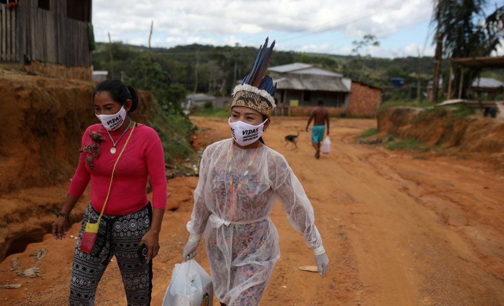 «Los profesionales de salud están enfrentando una precariedad enorme en todo el país, pero especialmente en la Amazonia y, más aún, en las áreas rurales. Muchas aldeas indígenas no tienen ni siquiera la atención de un equipo sanitario, lo que dificulta llevar un control de los contagiados», afirma Angela Amanakwa Kaxuyana, integrante de la Coordinación de las Organizaciones Indígenas de la Amazonia Brasileña (COIAB) y miembro del pueblo Kahyana, que vive en el municipio de Oriximiná, estado de Pará. «Los indígenas no tenemos un plano de ruta específico para todo el mundo, pero sabemos por experiencia que vivir en armonía con la naturaleza es una garantía para proteger nuestra salud», declara Amanakwa, que alerta del riesgo de propagación de ciertas enfermedades provenientes del mundo animal si sus hábitats son deforestados.