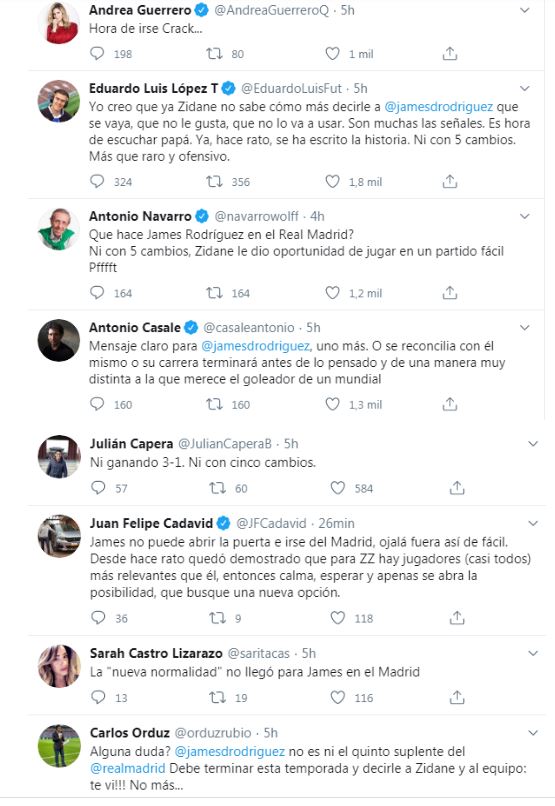 indignación nacional de periodistas deportivos y aficionados en redes a favor de James; quieren que se marche del Madrid