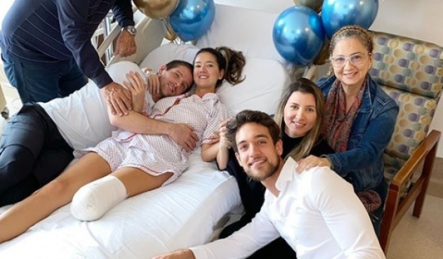 A través de su cuenta de Instagram, el actor publicó una foto en la que aparece recostado junto a la exseñorita Colombia, quien ya se encuentra con su pierna amputada y le da un beso en la cabeza mientras se abrazan.