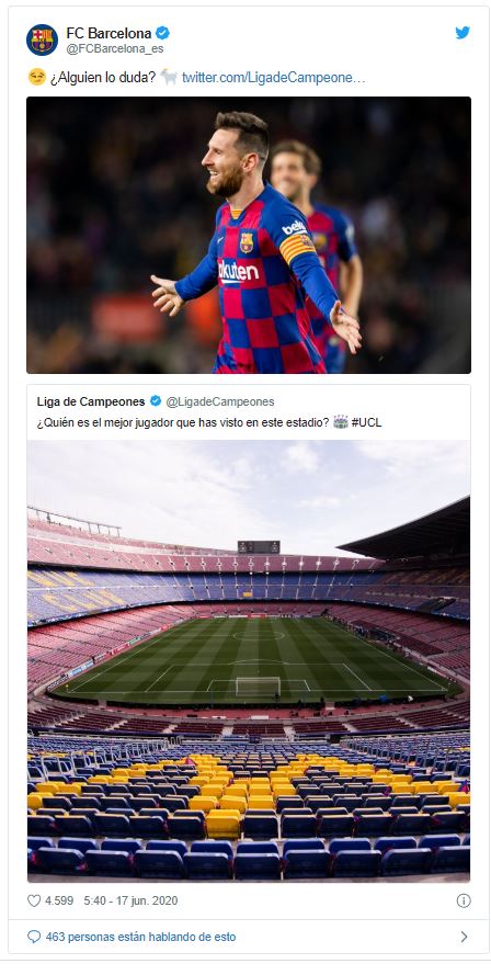 Con una foto del Camp Nou, donde el Barcelona hace de local, publicó: «¿Quién es el mejor jugador que has visto en este estadio?».