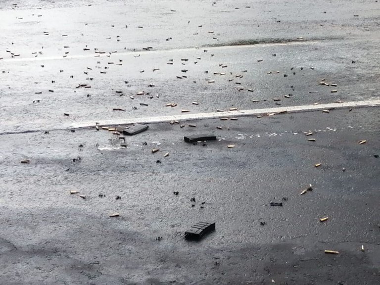 Decenas de casquillos quedaron sobre el asfalto y de acuerdo con los primeros reportes, en la balacera se utilizó una Barret calibre.50, considerada como una de las armas más potentes en el país.