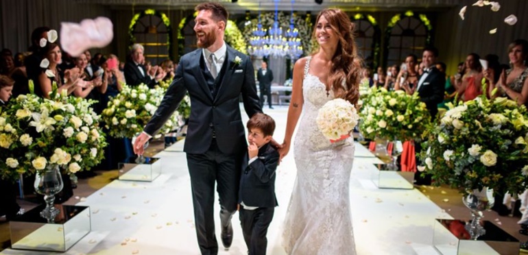 Messi y Antonela Roccuzzo el 30 de junio de 2017 cuando contrajeron matrimonio en su ciudad natal