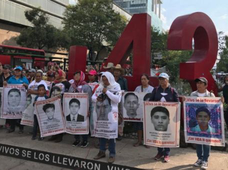 La noche del 26 de septiembre de 2014, 43 jóvenes fueron detenidos por policías municipales y entregados a integrantes de Guerreros Unidos, que los asesinaron e incineraron sus restos en un vertedero de basura, según la versión oficial del Gobierno del entonces presidente de México, Enrique Peña Nieto, conocida como la «verdad histórica».