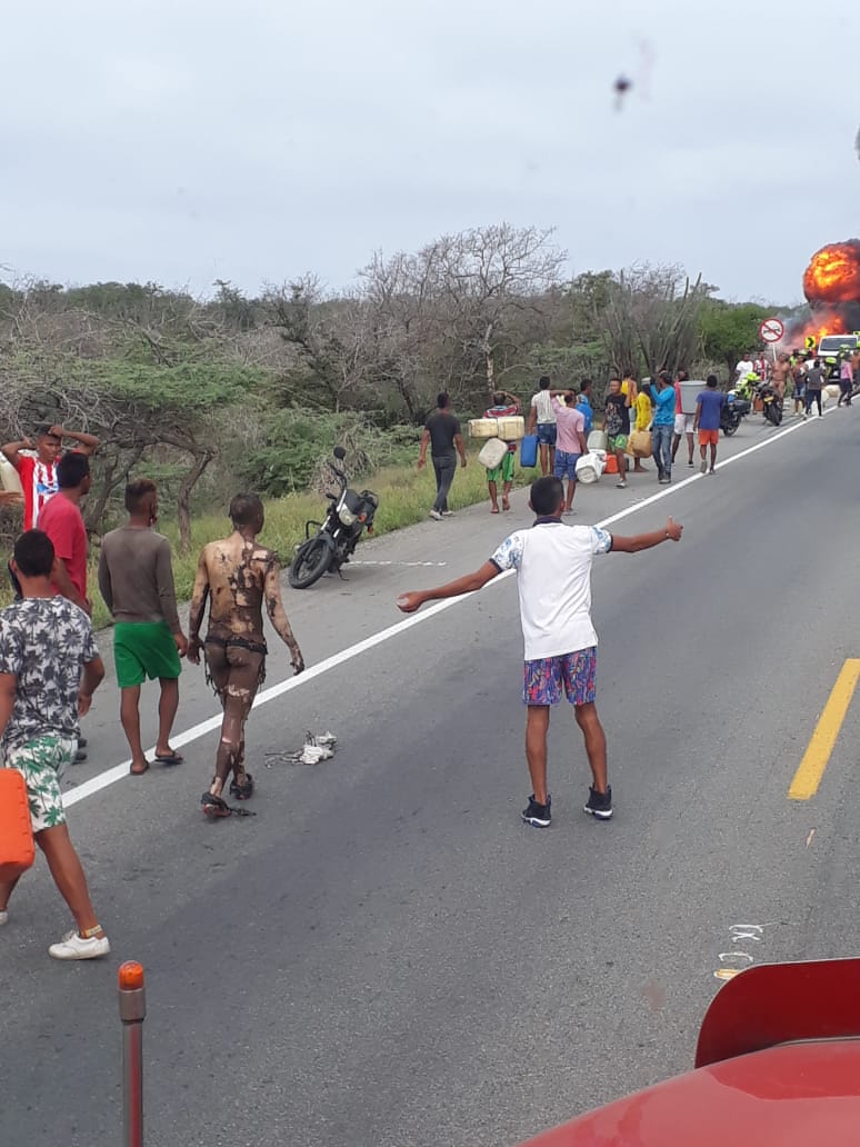 El vehículo se volteó y se quemaron quienes intentaban saquearlo. Hay más de 50 heridos.