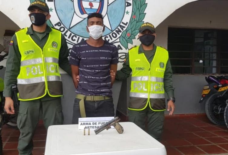 Las labores de patrullaje y control en la zona permitieron a miembros del Modelo Nacional de Vigilancia Comunitaria por Cuadrante del municipio de Villanueva Bolívar, lograron capturar al presunto delincuente al que se le encontró en su poder un arma de fuego de fabricación artesanal.