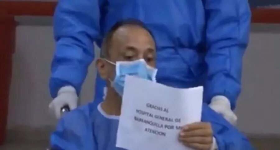 “Gracias al Hospital General de Barranquilla por la atención”, manifestó el hombre en un cartel que sostuvo mientras era retirado de la clínica, en medio de una calle de honor realizada por el personal sanitario.