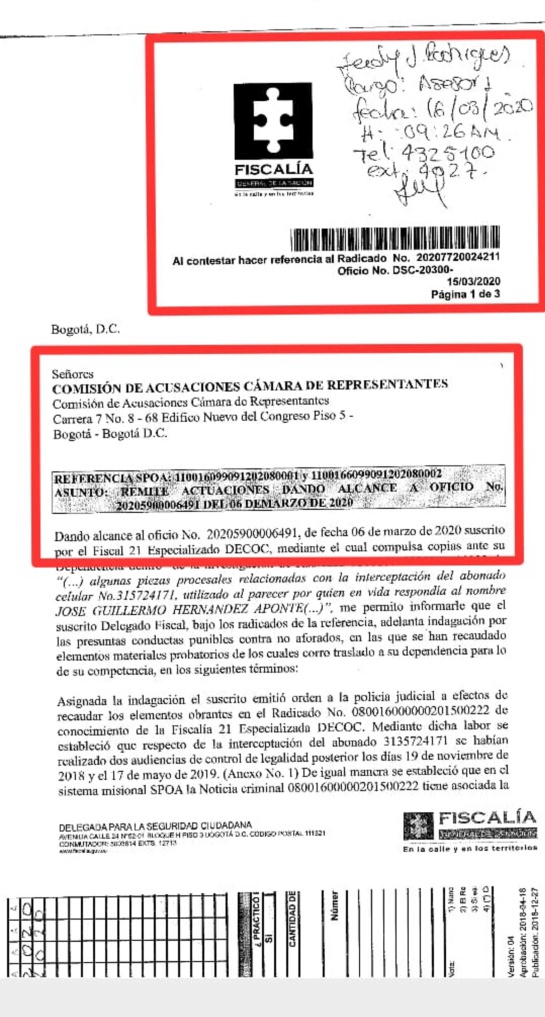 Desde que el Fiscal General, Francisco Barbosa, ordenó la compulsa de copias a todas las autoridades competentes para investigar este escándalo, los peritos del ente acusador, entregaron copia de las interceptaciones en medios magnéticos, que van acompañados de un instructivo que contiene las claves para acceder a los audios.