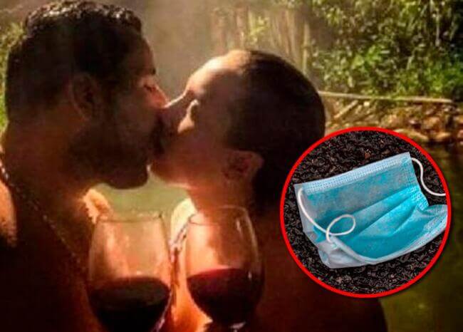 Las fotos de la romántica velada en plena pandemia, con copas de vino incluidas, son virales en redes.