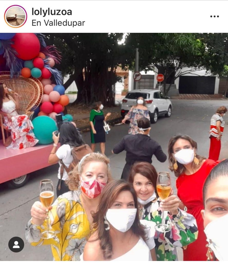 Las fotos fueron divulgadas a través de las redes sociales, en la cuenta de Loli Luz ovalle Angarita, hermana de el exgobernador del Cesar Franco Ovalle, entre las que se observa alguna sin tapabocas. generando comentarios adversos: “…..del valle en despedida de soltera de Sandra Soto, empleada del Banco de Occidente. Gozando y bailando…”.