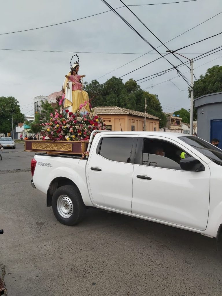 A las 4:00 de la tarde la imagen de la virgen recorrió las principales avenidas de la ciudad. Se contó con la compañía de la Policía Nacional, cuyos uniformados se encargaron de resguardarla y garantizar cero aglomeraciones.
