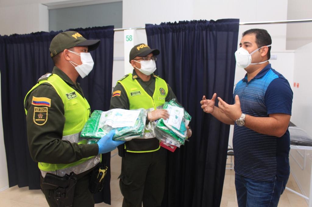 El personal de policía y vigilantes que custodian a los pacientes, fueron dotados de elementos de bioseguridad como: guantes, caretas de protección, trajes anti fluido, gel antibacterial, jabón líquido, entre otros.