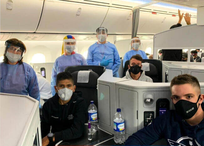 En la expedición destacaba un nutrido grupo de ciclistas encabezado por Egan Bernal, vigente campeón del Tour de Francia, y por Nairo Quintana, ganador entre otras carreras del Giro de Italia y de La Vuelta.