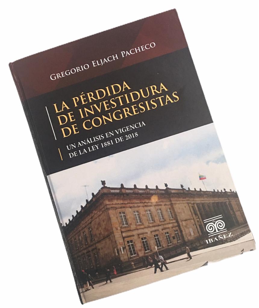 La pérdida de investidura de los congresistas, nueva obra literaria escrita por Juan Gregorio Eljach Pacheco llega a las estanterías de las librerías para presentar un análisis en vigencia de la Ley 1881 de 2018, con un estudio analítico y crítico sobre antecedentes, causales, dudas, con las que el lector podrá comprender esta figura de rango constitucional.