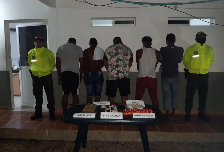 En cuanto a los otros, corresponden a Ever Luis Mariote Cañate, de 24 años; Jeison José Ruíz Alfaro, de 37; y Osneider Octavio Agámez Arrieta, de 32 años. Este último registra antecedentes judiciales por los delitos de abandono y lesiones personales. Según información de inteligencia, los cinco detenidos conformaban la banda de microtráfico conocida como «Los Mampos», que ejercía sus actividades delictivas en el caso urbano y rural de Mahates.
