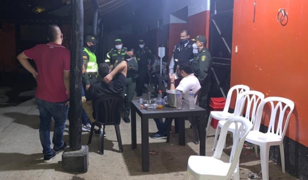 El general Luis Ernesto García, comandante de la Institución Policial, explicó que el elevado ruido en la vereda Río Frío de Girón, alertó a sus uniformados, quienes al llegar encontraron a este grupo de personas en medio del festejo.