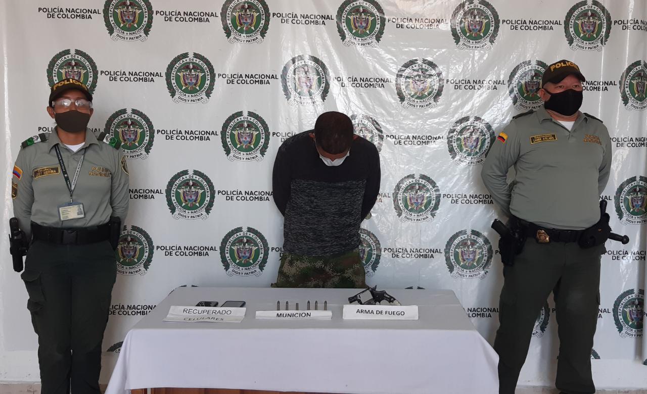 Segùn la Policía, al momento de ser capturado además hallarle en su poder los teléfonos celulares también tenía un revólver calibre 38, el cual usaba para intimidar a las víctimas y arrebatarles las pertenencias.