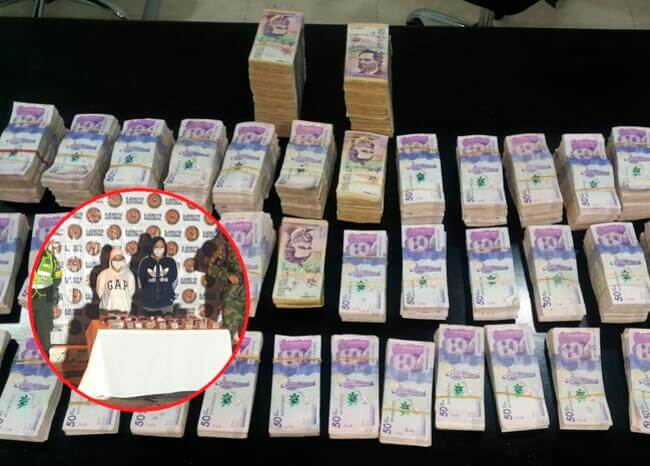 En un operativo realizado por la Policía Nacional, en coordinación con el Ejército, fueron capturadas dos personas mientras transportaban una millonaria caleta de dinero.