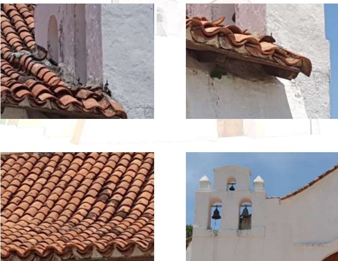Se reportaron igualmente deterioros en la cubierta que ocasionan goteras, y que son las que proporcionan el mayor riesgo de daño severo o irreparable en estos tiempos de lluvia. “La cubierta ha cedido en tres partes por las filtraciones de agua. La primera se reporta en la espadaña, la segunda en el muro lateral izquierdo justo en el retablo de la Dolorosa, ocasionando deterioro a la imagen y sus ornamentos; la tercera afectación se ubica en el muro lateral derecho frente al retablo de la referida imagen santa”.