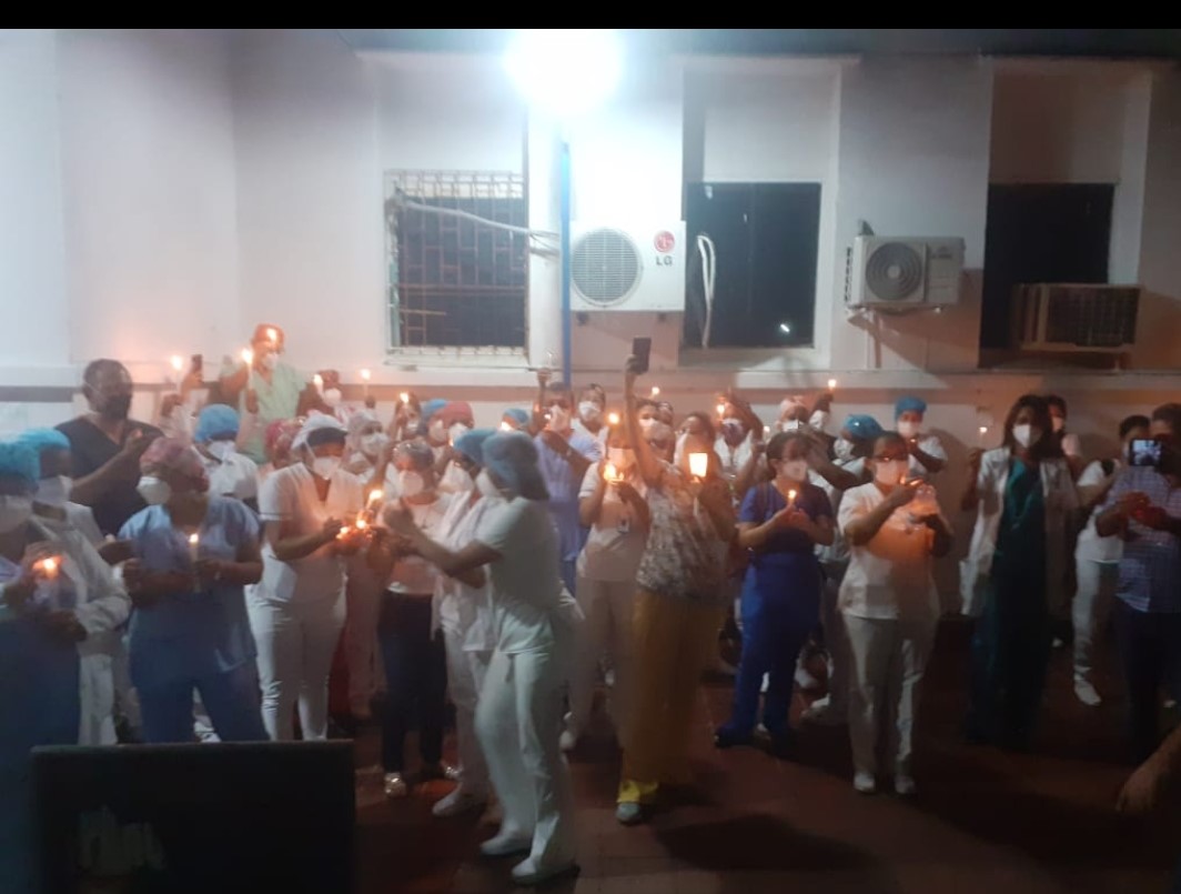Anoche también realizaron una velatón que contó con el apoyo de muchos vallenatos, mientras su postura se mantiene hasta que se consiga la solución a este conflicto, manifestó Karen Oñate, fisioterapeuta en el Hospital Rosario Pumarejo de López.