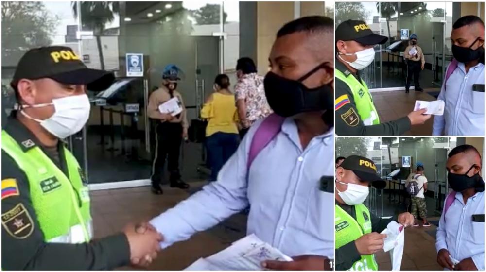 Agradecido. Así está un ciudadano en Barranquilla que dejó caer un sobre con dinero en una entidad bancaria en el norte de la ciudad y que por fortuna fue encontrado por dos patrulleros de la Policía Metropolitana que hicieron lo posible para localizarlo y luego entregarle esta importante suma.